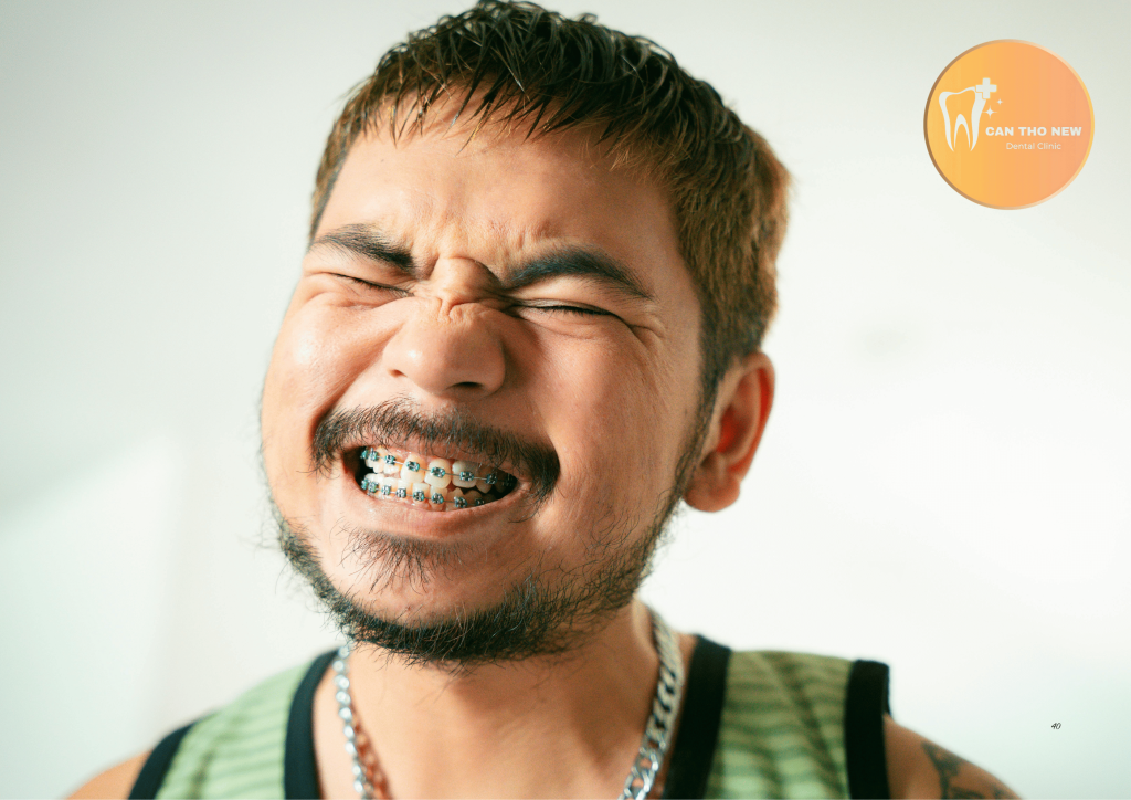 2. Keo Dán Nha Khoa (Dental Adhesive): Lớp keo chuyên dụng dùng để gắn mắc cài lên bề mặt răng cũng có thể bị nhiễm màu. Nếu việc vệ sinh không kỹ, mảng bám và màu thực phẩm có thể tích tụ quanh viền lớp keo, tạo ra một quầng màu vàng mờ xung quanh chân đế mắc cài.